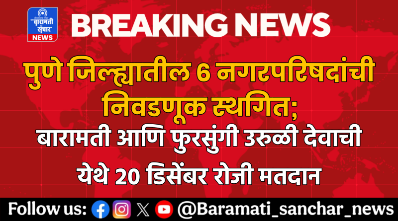 Read moreपुणे : महाराष्ट्र राज्य निवडणूक आयोगाच्या निर्देशानुसार, पुणे जिल्ह्यातील सहा नगरपरिषदांच्या सार्वत्रिक निवडणुकीच्या कार्यक्रमात मोठे बदल झाले आहेत. पुणे जिल्ह्याचे