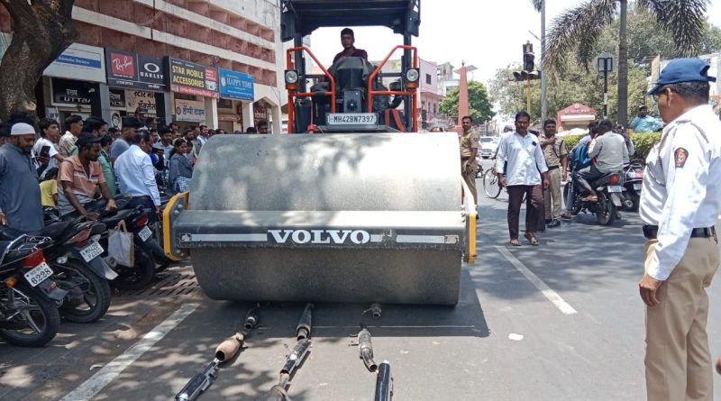 बारामतीत ध्वनिप्रदूषणावर पोलिसांचा ‘रोलर’; अवैध बुलेट सायलेन्सर नष्ट!