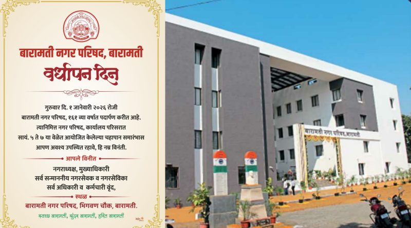 बारामती: बारामती नगर परिषद आपल्या गौरवशाली परंपरेचा नवा टप्पा गाठत असून, उद्या गुरुवार, दि. १ जानेवारी २०२६ रोजी नगर परिषद १६१ व्या वर्षात पदार्पण करत आहे. या ऐतिहासिक वर्धापन दिनानिमित्त नगर परिषद प्रशासनाच्या वतीने विशेष कार्यक्रमाचे आयोजन करण्यात आले आहे.